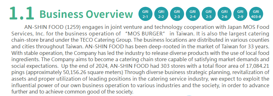 • Joint venture with MOS Food Services, Inc. from Japan and establish An-Shin Food Services Ltd., which capital worth NTD$80 million.